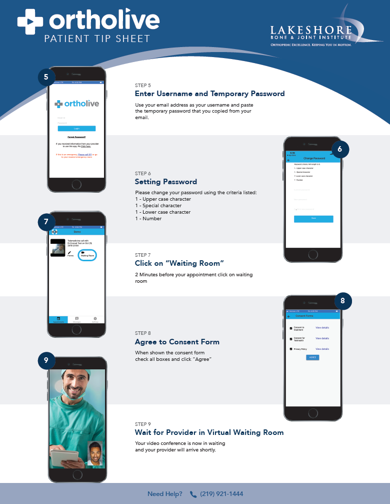 Before your appointment, please complete steps 1 – 6. Then on the day of your appointment, please complete steps 7 – 9.